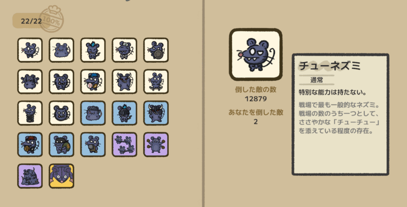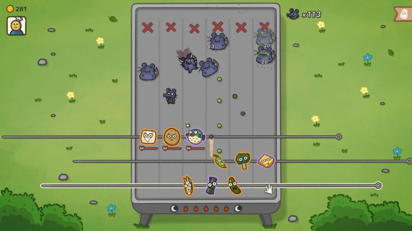 重要なのは、ネズミの発生場所や進行ルートを読んで、焼き台がダメージを受けないように効率よく敵を倒すこと。また、ステージが進むにつれ敵の攻撃力や耐久も上昇します。序盤の段階で「何ビルドに進むかをある程度定める」ことが、安定攻略のカギになります。
