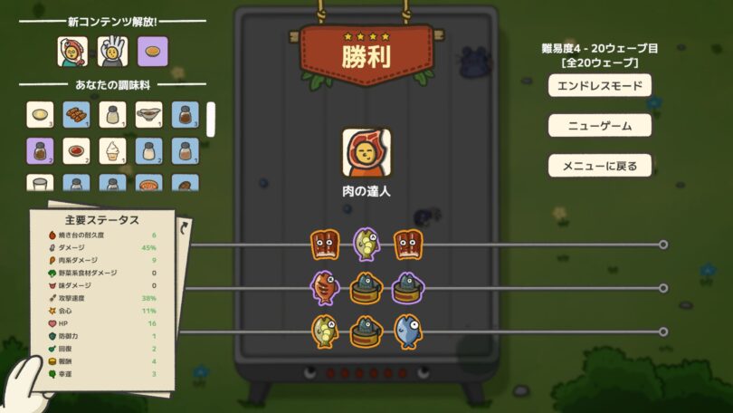 ただ、食材自体にダメージスケールがないので、200ウェーブ目以降などはかなり厳しくなってきます。
