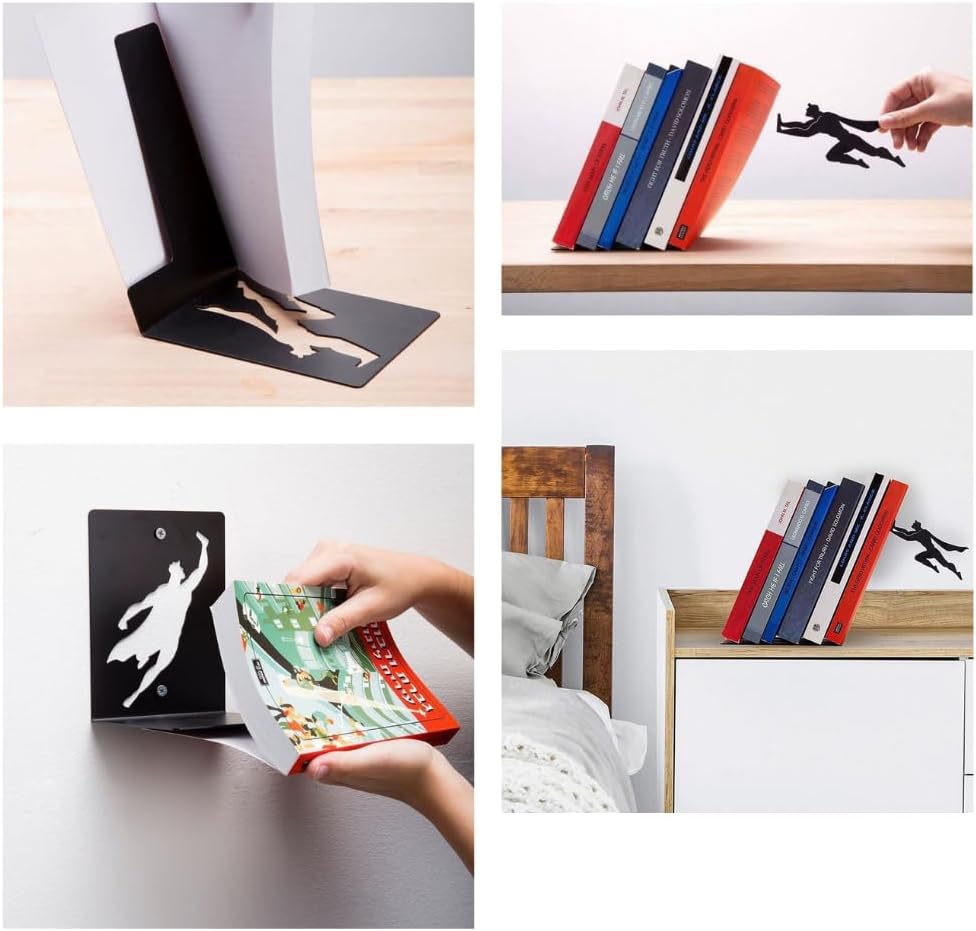 スーパーマン ブックエンド ブラック 金属製 本立て 滑らない 面白い ブックスタンド 卓上収納 デスク整理 本棚の飾り 事務用品 文房具