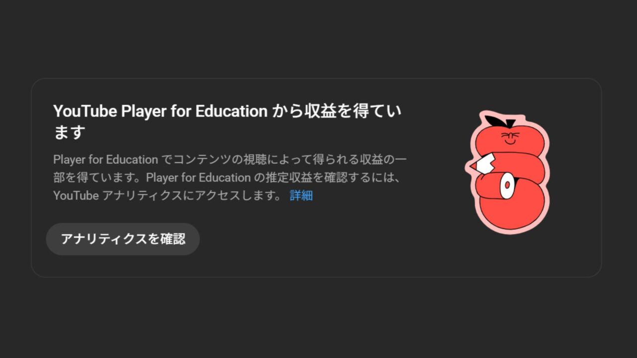 Player for Education による収益化の有無は、「その動画が実際に教育現場で利用されているか」という実績に大きく左右されます。YouTube が事前に判定するのではなく、教育機関が埋め込むという形で初めて収益が発生する仕組みになっています。